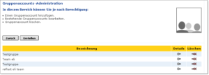 Um einen Gruppenaccount zu erstellen, wählt der Administrator in der Navigation den Menüpunkt „Gruppenaccounts“ aus.